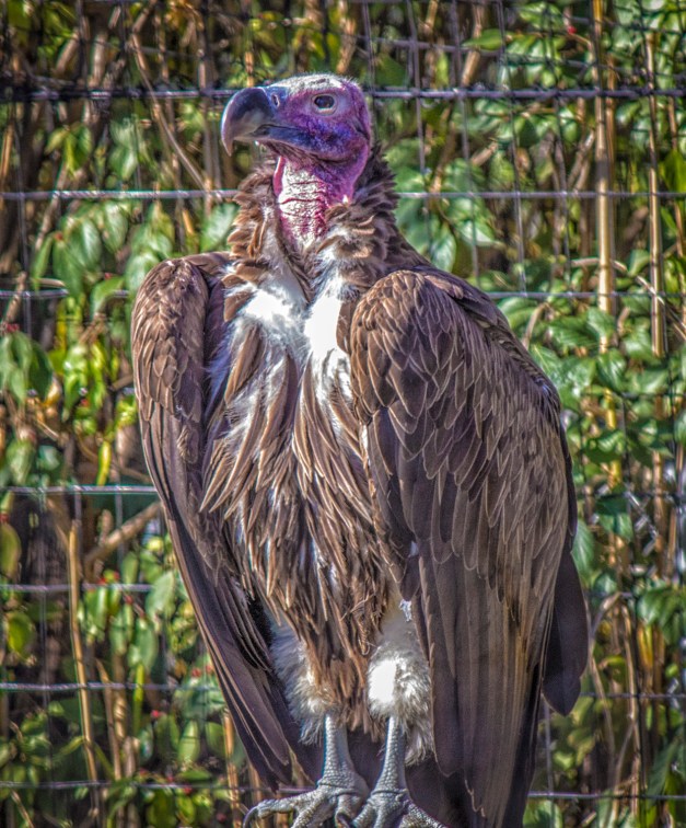 I could see the naked red head between the great wings
