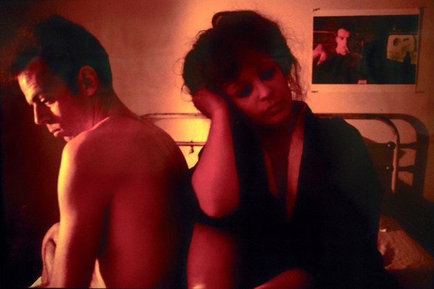 This photograph depicts artist Nan Goldin and her boyfriend at the time, seated in bed. The physical and emotional tension captured here reflects their strained relationship, one that eventually became abusive. The photograph is part of Goldin's influential work The Ballard of Sexual Dependency. In it, Goldin chronicled the struggles for intimacy and understanding within her circle of friends and lovers during the 1970s and early 1980s. Ballad was originally conceived as a slide show of more than 700 color images accompanied by a soundtrack.