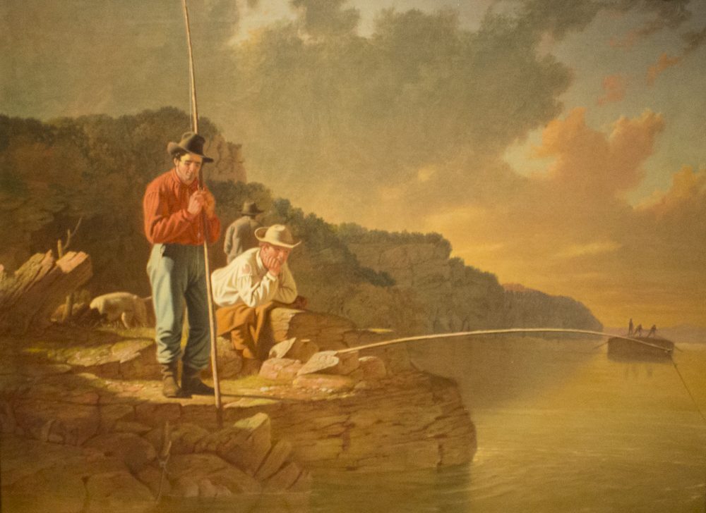 George Caleb Bingham painted this self-portrait, the last of four known, just two years before he died. The painting's composition was inspired by the English artist Sir Edward Landseer, who rendered himself similarly in a canvas that Bingham evidently knew from an engraving. The artist's direct gaze outward places the viewer in the role of a mirror. Bingham wears the toupee he customarily wore due to hair loss as a young man from a bout of smallpox. Bingham's choice to picture himself sketching reflects the important role drawing played in his art. He drew on paper as well as sketched directly on the canvas for both portraits and genre paintings.