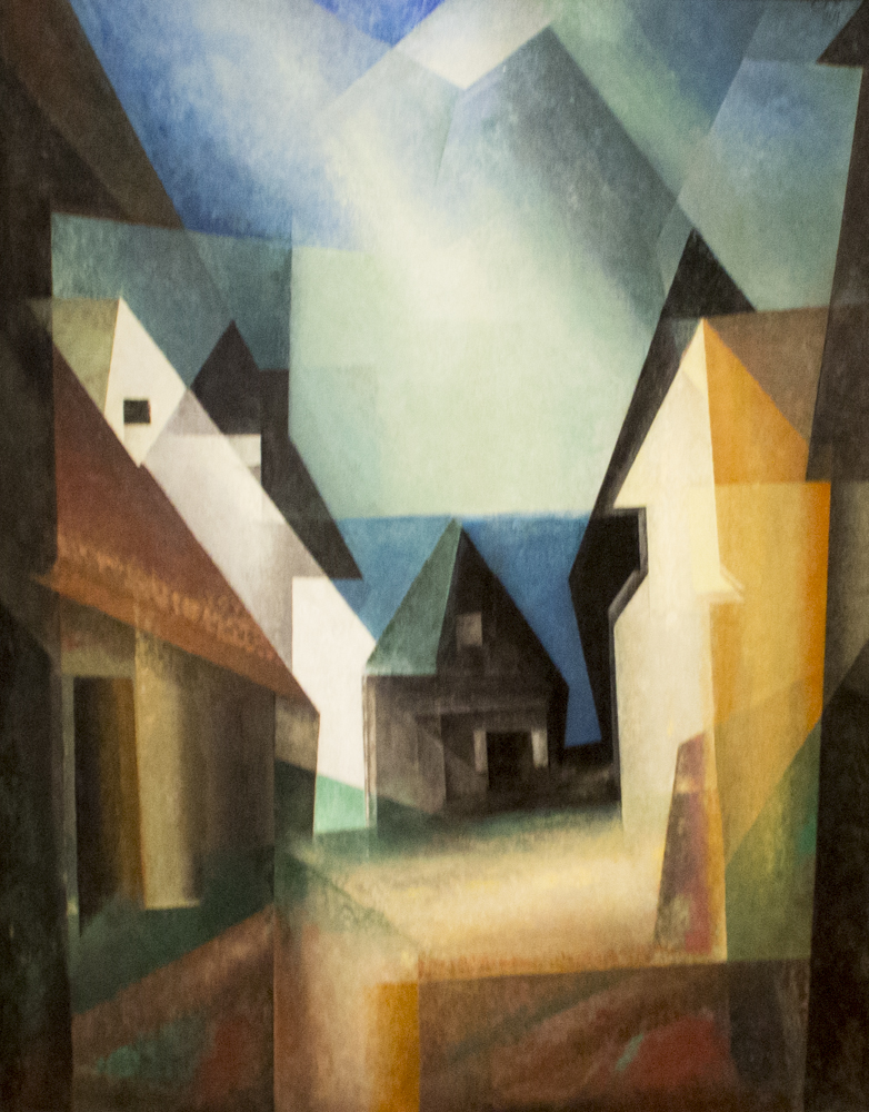 "Named for the small German town it depicts, Gaberndorf II features shifting, luminous planes of color. The prismatic hues may evoke the feeling of a Bach fugue, a layered musical composition of interwoven parts elaborating on a common theme. Lyonel Feininger, who called music the first influence in his life, revered Johann Sebastian Bach above all other composers. Feininger created this painting while teaching at the Bauhaus, Germany’s innovative art and design school founded in Weimar in 1919. Dedicated to principles of economy, efficiency, and spiritual renewal, the Bauhaus (House of Construction) came to define Modernism."