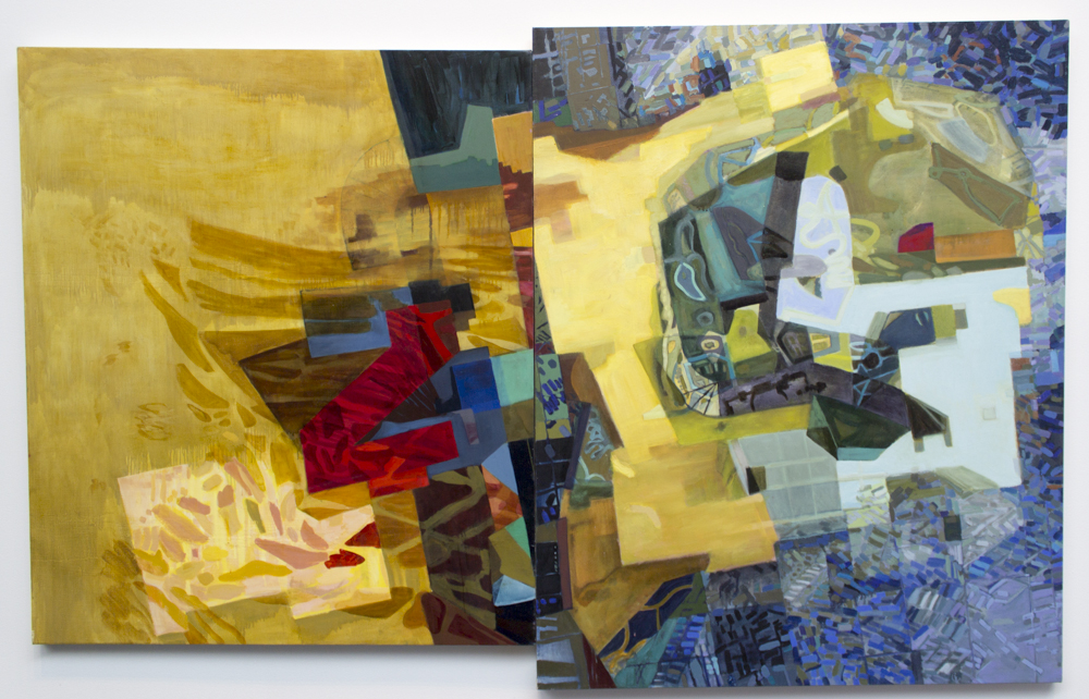 “My work is inspired by a love of paint and the fiction of painting. A strong belief in the personal visual experience is reinforced by my travels and everyday living; an integration of art and life. Familiar shapes are not recognized but create ideas or metaphors. Imagery is assembled, layered and veiled to offer multiple meanings. Abstraction enables the freedom of invention. An array of graphic figuration is referenced, including: water, air and locations. these are shapes and rhythms where man-made forms merge with aerial views and reflections. It is the juxtaposition of these components which create an invented space and visual metaphor of how our culture and physical landscape has changed and continues to advance.