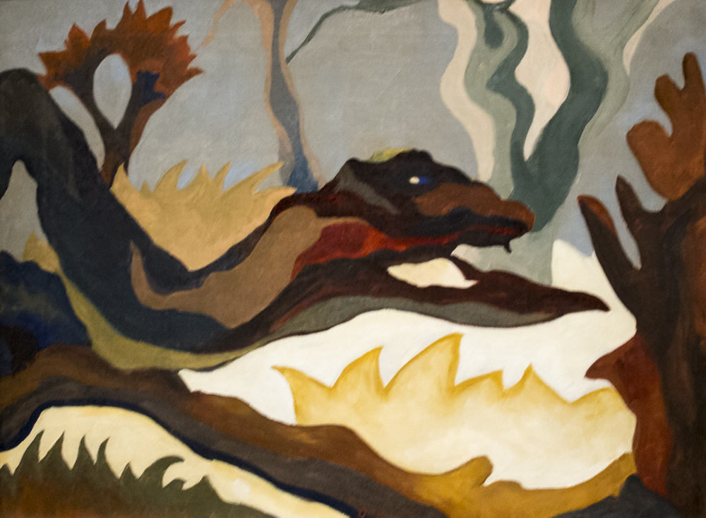 After years of travel, Marsden Hartley proclaimed himself “the Painter from Maine.” This painting of Mt. Katahdin, Maine’s highest peak, belongs to a series focused on the mountain. Following a visit there in October 1939, Hartley painted multiple canvases over a three-year period. He modified his palette to suggest different seasons in each painting. In Mt. Katahdin—November Afternoon, the contrast between the blue sky, purple mountains, and auburn woods evokes an early-winter day. Hartley identified with the remote peak, seeing it as an emblem of his own lonely resilience.