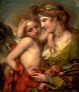 “Benjamin West painted many versions of this tender scene recalling an ode by the ancient Greek poet Anacreon. Here, Venus comforts her son, Cupid, after he suffers a bee sting. This painting reflects the noble ideals and elevated sentiments of the history painting genre, for which West became a key representative.