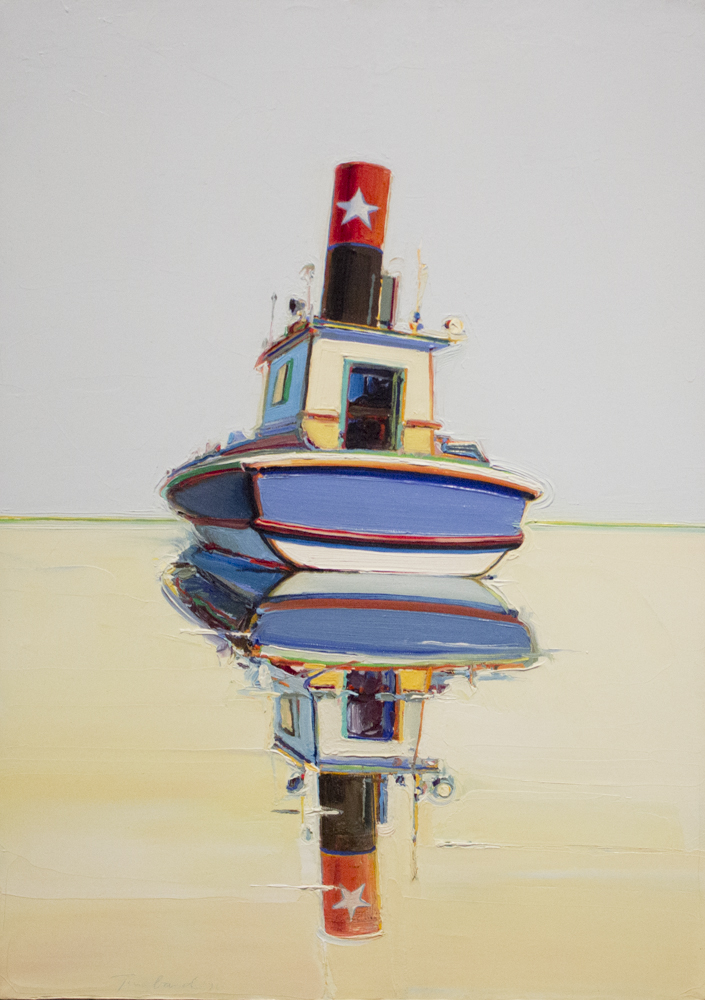After years of travel, Marsden Hartley proclaimed himself “the Painter from Maine.” This painting of Mt. Katahdin, Maine’s highest peak, belongs to a series focused on the mountain. Following a visit there in October 1939, Hartley painted multiple canvases over a three-year period. He modified his palette to suggest different seasons in each painting. In Mt. Katahdin—November Afternoon, the contrast between the blue sky, purple mountains, and auburn woods evokes an early-winter day. Hartley identified with the remote peak, seeing it as an emblem of his own lonely resilience.