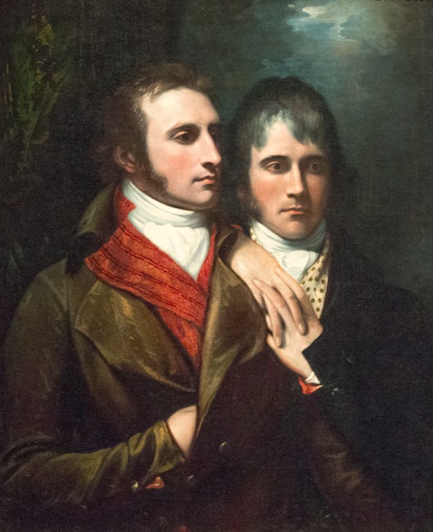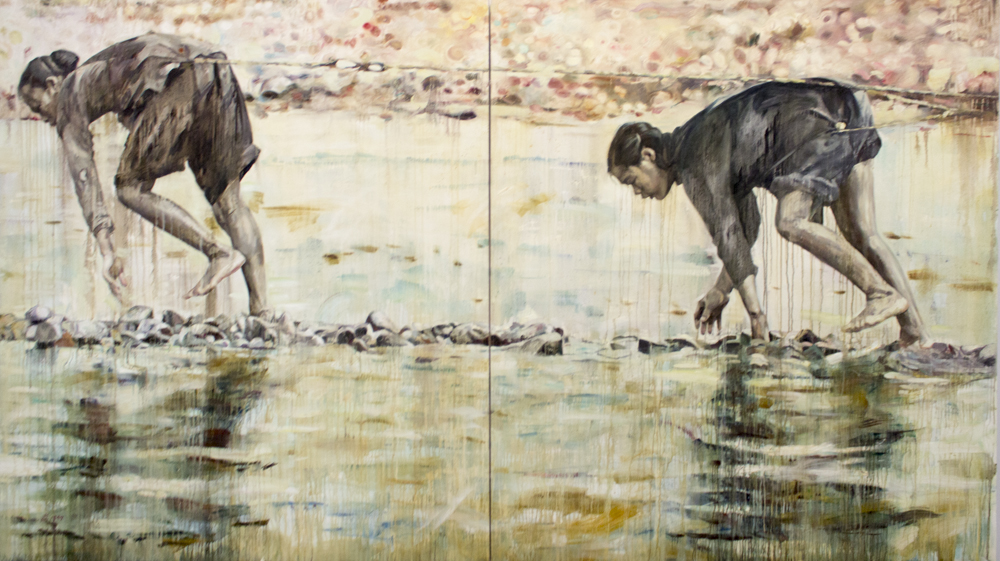 Jane Freilicher began her career as an abstract painter and later turned to representational paintings of still lifes and landscapes. Corner of Studio depicts the Long Island landscape as seen from the windows of her art studio. She uses minimal details o identify the interior space. At the far left, a drawing or unfinished painting is attached to the wall, and a section of a painted landscape leans against the wall’s surface. Both scenes, the landscape in the painting-within-the-painting and the landscape viewed through the set of windows, share the same sense of flatness, or lack of implied distance.