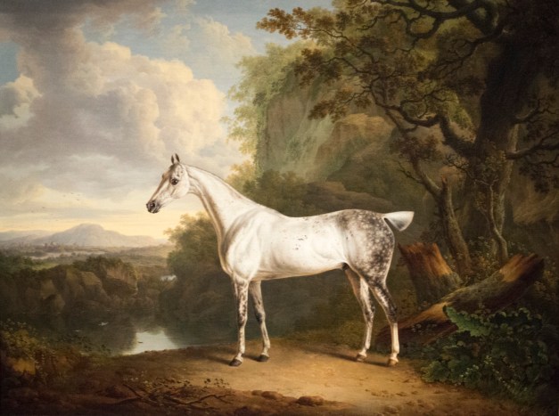 "Horses contributed significantly to Britain’s rich history and culture. They played an important role in hunting and the sport of organized horse racing. Either arena could have been where this gray stallion frolicked. Charles Towne obtained great celebrity with his portraits of working animals. Painted with diligent and affectionate care, this portrait suggests the animal’s importance to its owner. The stallion’s name, Gillibrand, could connect it to a Mr. Gillibrand who was a registered breeder of racehorses in Cheshire, near Liverpool."